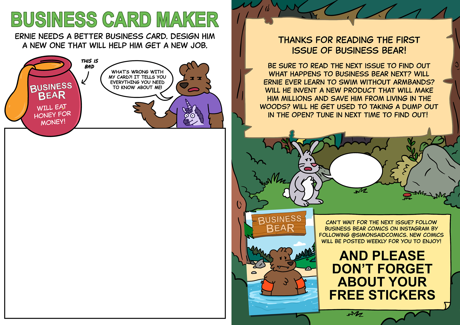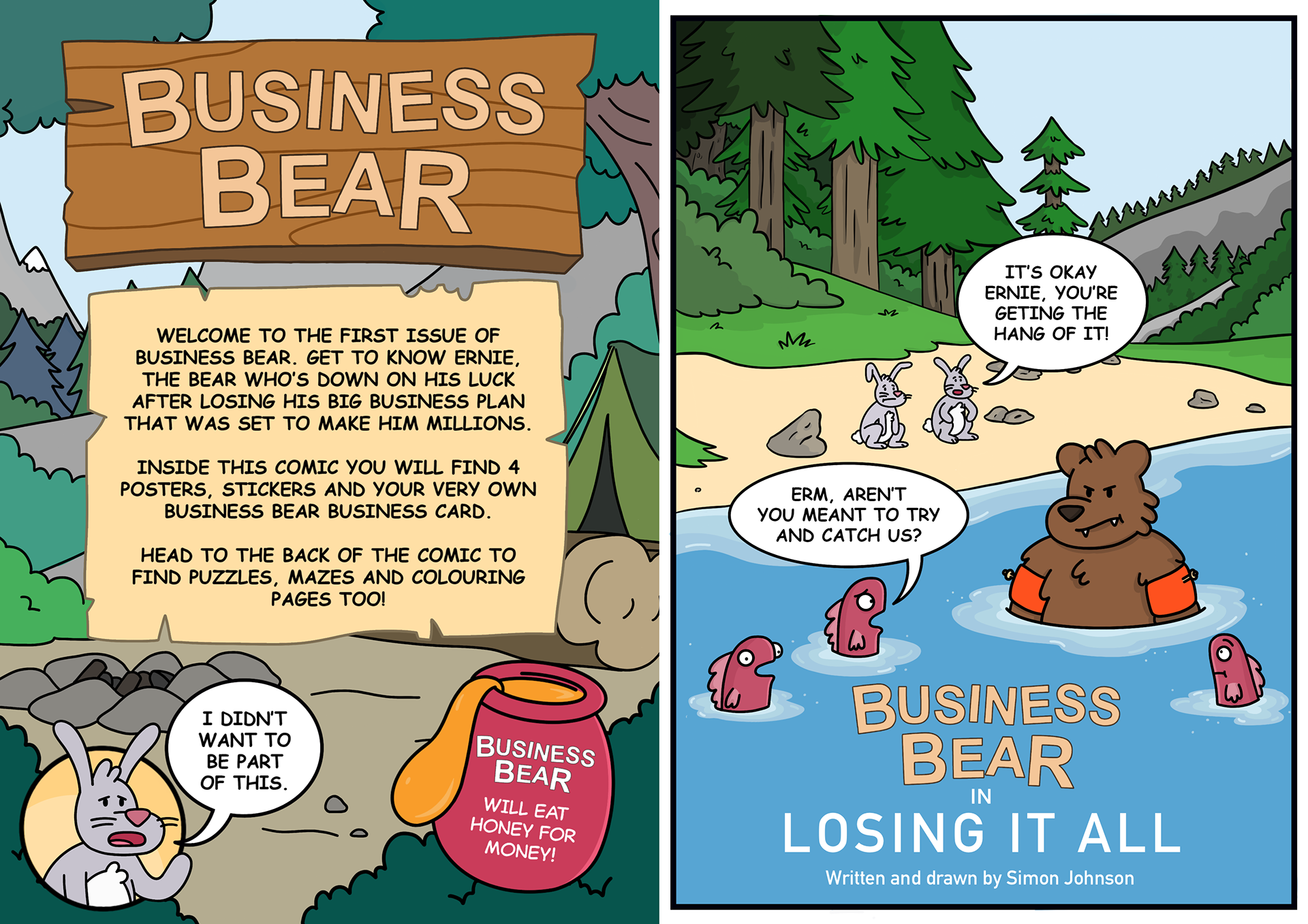 Business Bear is a comic book I created during the lockdown in 2020, it was my first experience in creating a story directly for print rather than for sharing on social media, and was aimed at children and adults.