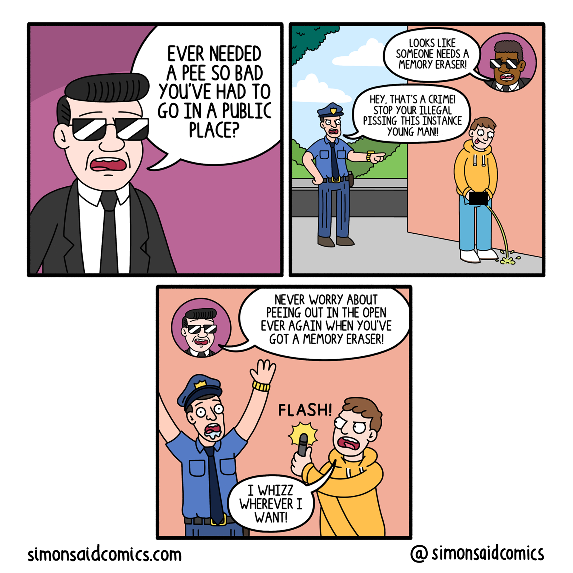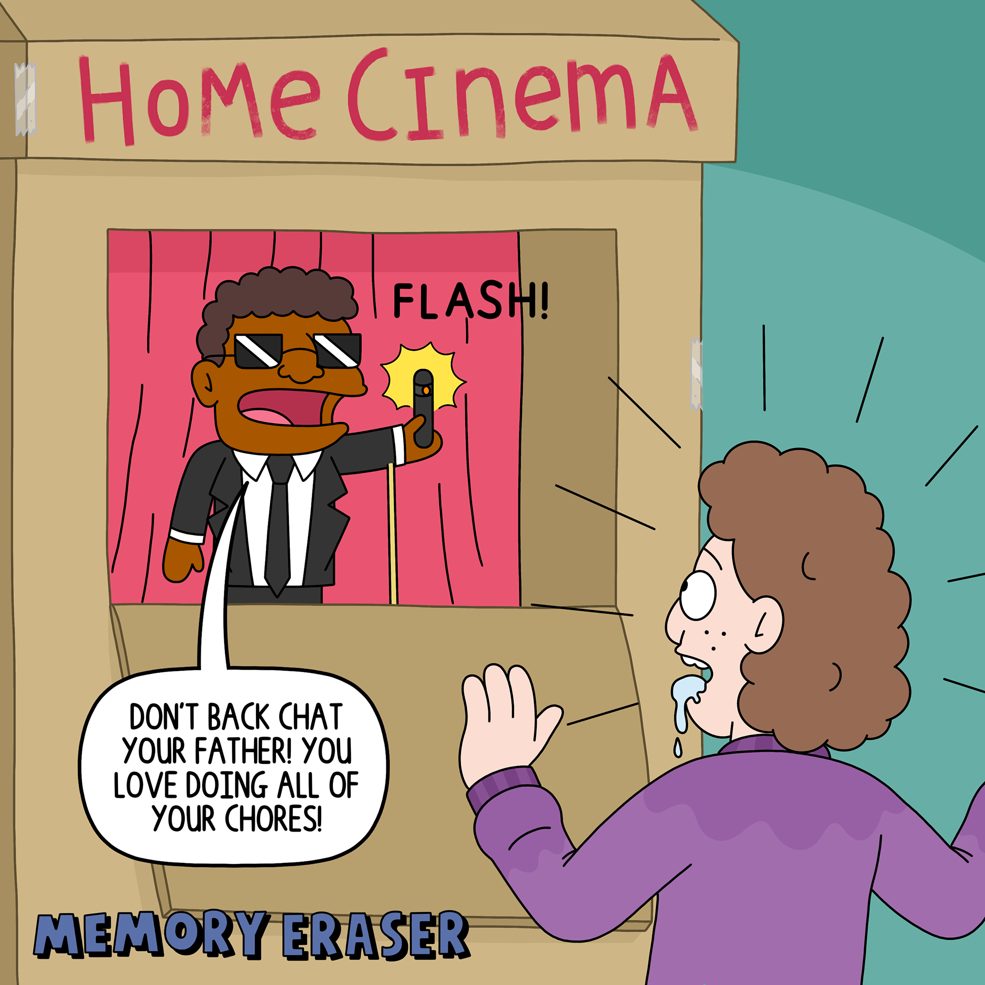 A comic series about a device that can wipe the memory of anyone it's pointed at. I created this series during lockdown and printed the collection to give to friends and family.